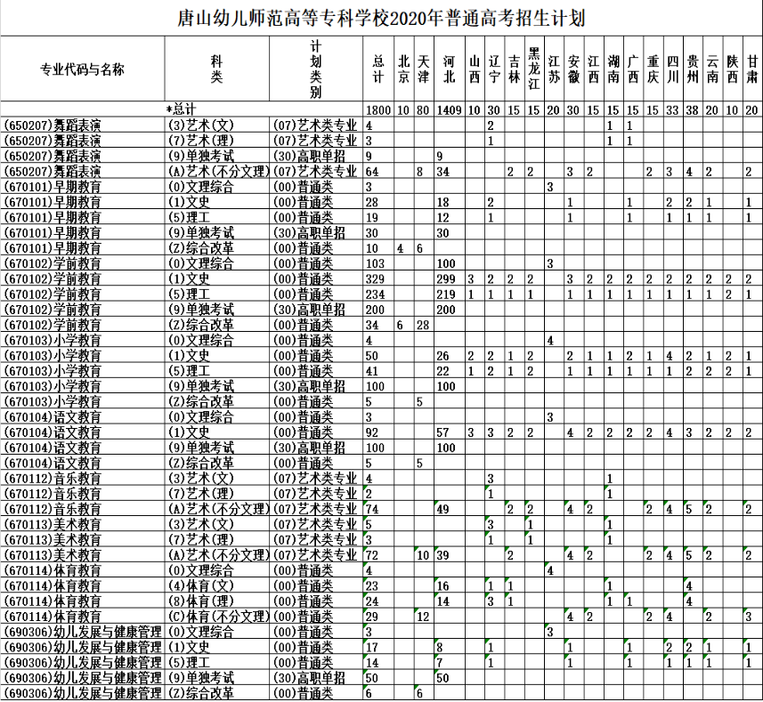 唐山幼兒師范高等專科學校2022年高招計劃